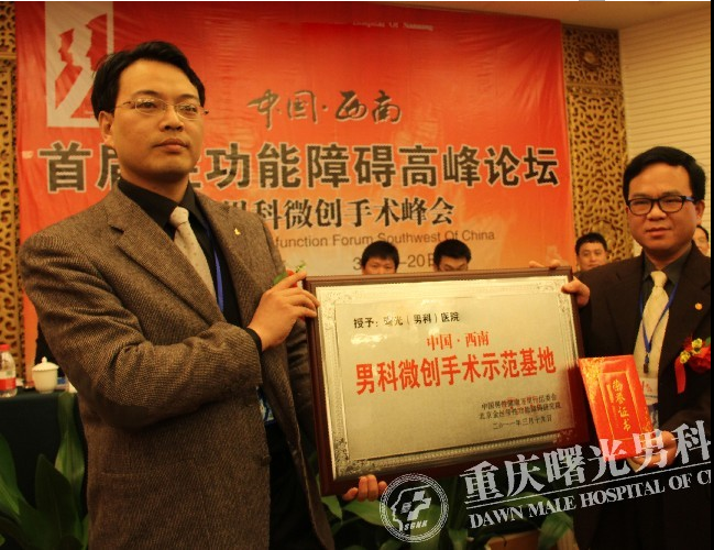 由中国男性健康万里行组委会、北京金丝带性功能障碍研究院主办,重庆曙光男科医院承办的“中国·西南性功能障碍高峰论坛暨男科微创手术峰会”于2011年3月19日在重庆顺利召开。