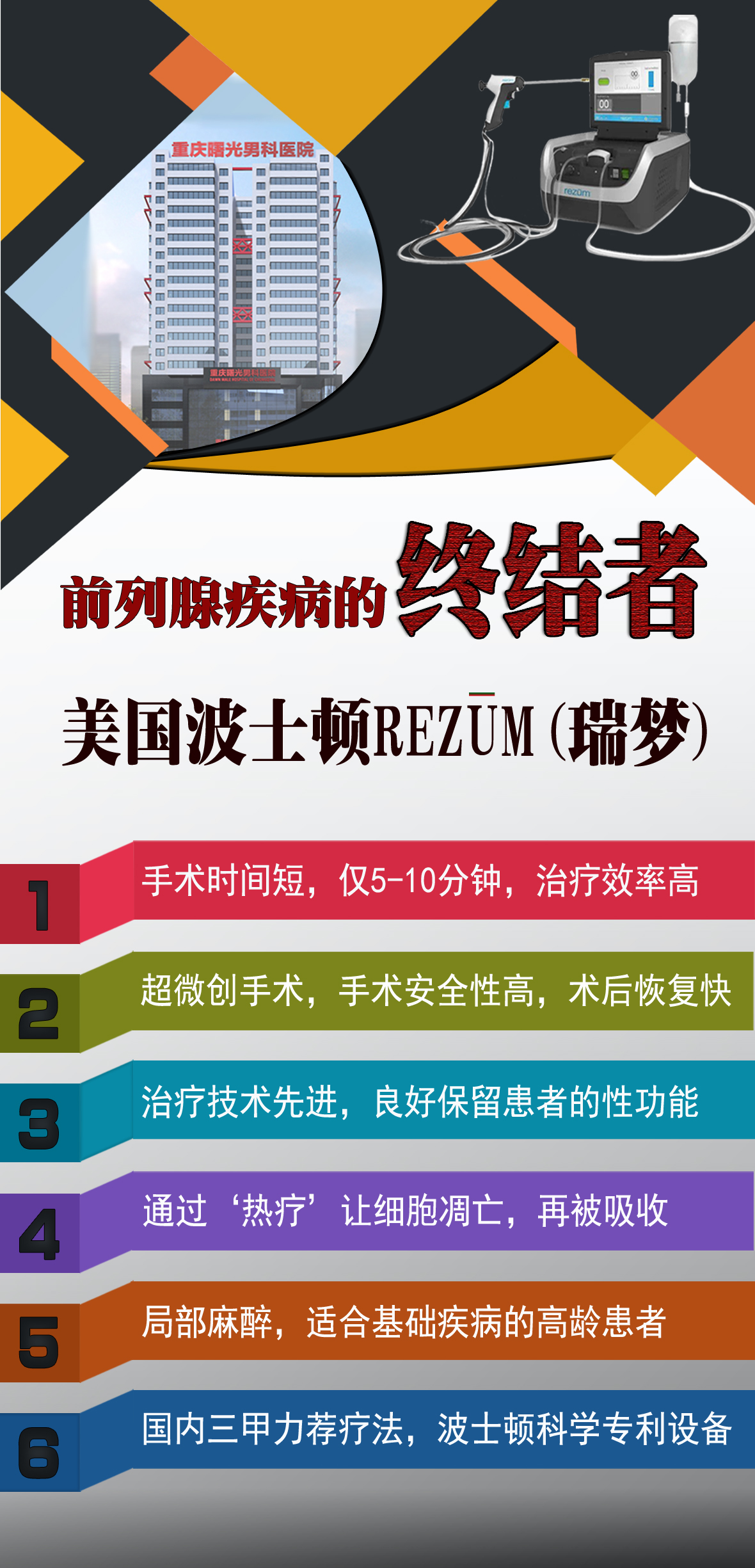 随着科技的进步,前列腺的治疗方式也在不断变化升级,从前列腺开放手术发展到经尿道电切激光手术。与开放手术相比,经尿道电切激光手术使前列腺手术安全性提高,比开放手术更趋于微创化。但是无论是电切还是激光手术,原理都是把增生的前列腺切掉,对患者的身体产生极大的影响。此次从欧美成功引进的美国波士顿瑞梦前列腺热蒸汽消融技术是通过‘热疗’让细胞凋亡,再被吸收,这种超微创技术是前列腺病症史上的又一次技术革命。美国波士顿瑞梦前列腺热蒸汽消融术在重庆曙光男科医院成功开展应用,给了前列腺增生患者新的治疗希望。该技术是目前国际上公认的先进的前列腺增生微创技术之一,目前在全球已经累计完成20万例。