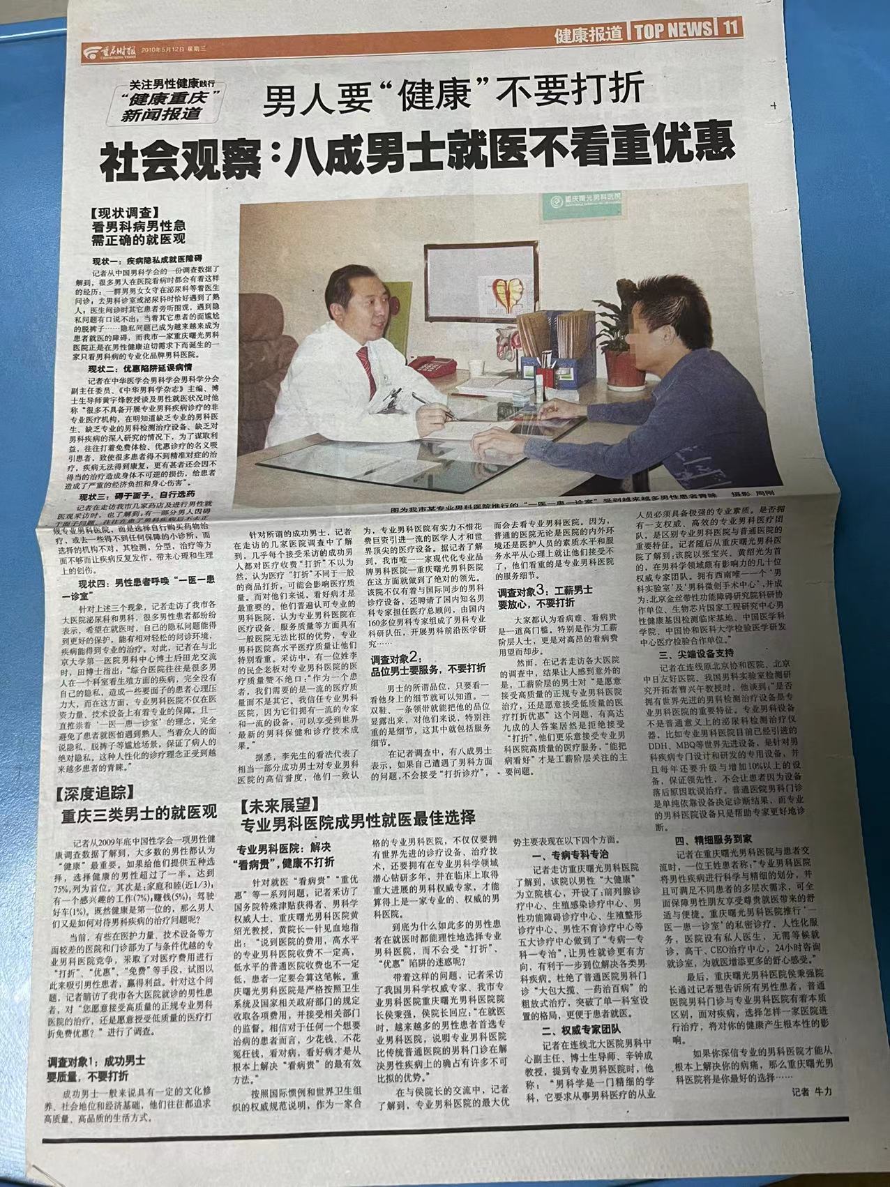 重庆曙光男科医院的前卫、设备和高端设备,可以在短时间内为男科患者诊断各种男科问题。医院采用行业新引进的新治疗方法,治疗效果良好。是男科患者选择就医的好地方。