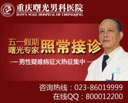 重庆曙光男科医院是一家专门从事男科诊疗的医院,对男科的各种疾病能作出安心、快捷的治疗。如果你有男科健康疑问可以直接咨询重庆曙光男科医院的在线医生,我们的QQ:800012200。也可以拨打重庆曙光男科医院的男性健康热线免费咨询电话:023-86860999。