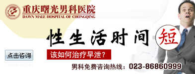 重庆曙光男科医院医生介绍,影响男性射精过快的原因很多,心理因素扮演重要角色,以往认为90%以上的早泄是由心理因素所致。所谓心理因素包括两方面,一是男性自己的担心,比如婚前有过手淫,首次性生活时因过于紧张,出现早泄,就认为自己有手病,可能与以往手淫有关,追悔莫及,实际早泄与手淫与否没有必然的联系。另一方面来自妻子的压力,怕妻子嘲笑,觉得在妻子面前抬不起头来,害怕性生活,为担心在性生活时又重蹈复辙。医学上称此为操作性焦虑。如果妻子对此能够理解,且给予安慰,情况会有所改善,如果妻子说了伤害丈夫自尊心的话,情况就会明显恶化。