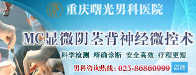 重庆曙光男科医院的医生介绍:由于引起习惯性早泄的因素比较多,首要考虑的就是治疗,另外在生活中要保持健康的习惯,治疗习惯性早泄就去重庆曙光男科医院,因为重庆曙光男科医院有着专业的疗法—MC显微阴茎背神经压搾术,MC显微阴茎背神经压搾术是微创技术,并且创伤小,恢复快,外形美观,有着比以往手术没有的优点。